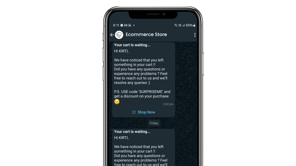 Send automated notifications for abandoned carts and schedule discount offer notifications for converting abandoned carts to confirmed orders.