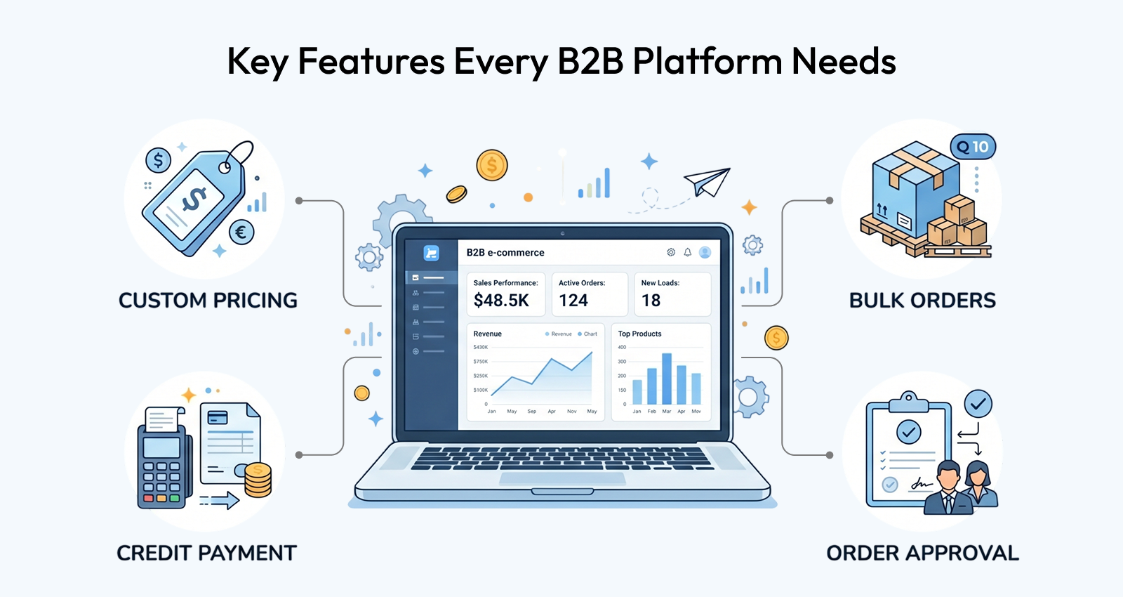 Choosing the right B2B ecommerce platform for manufacturers is how you remove that ceiling. Not by digitising your existing process and calling it done, but by building a proper online channel that lets buyers place orders on their own schedule, at their own negotiated pricing, with all the approval and payment flexibility that B2B trade requires. Done right, it doesn't replace your sales team — it frees them to do the work that actually needs a human.