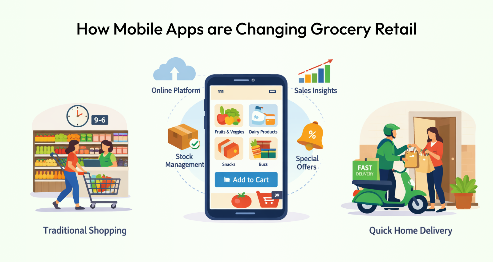 The grocery industry is experiencing one of the biggest digital transformations in retail. For decades, grocery shopping meant visiting nearby stores, selecting products manually, and carrying bags home. While this model still exists, consumer behavior has changed dramatically with the rise of smartphones, digital payments, and on-demand delivery services.