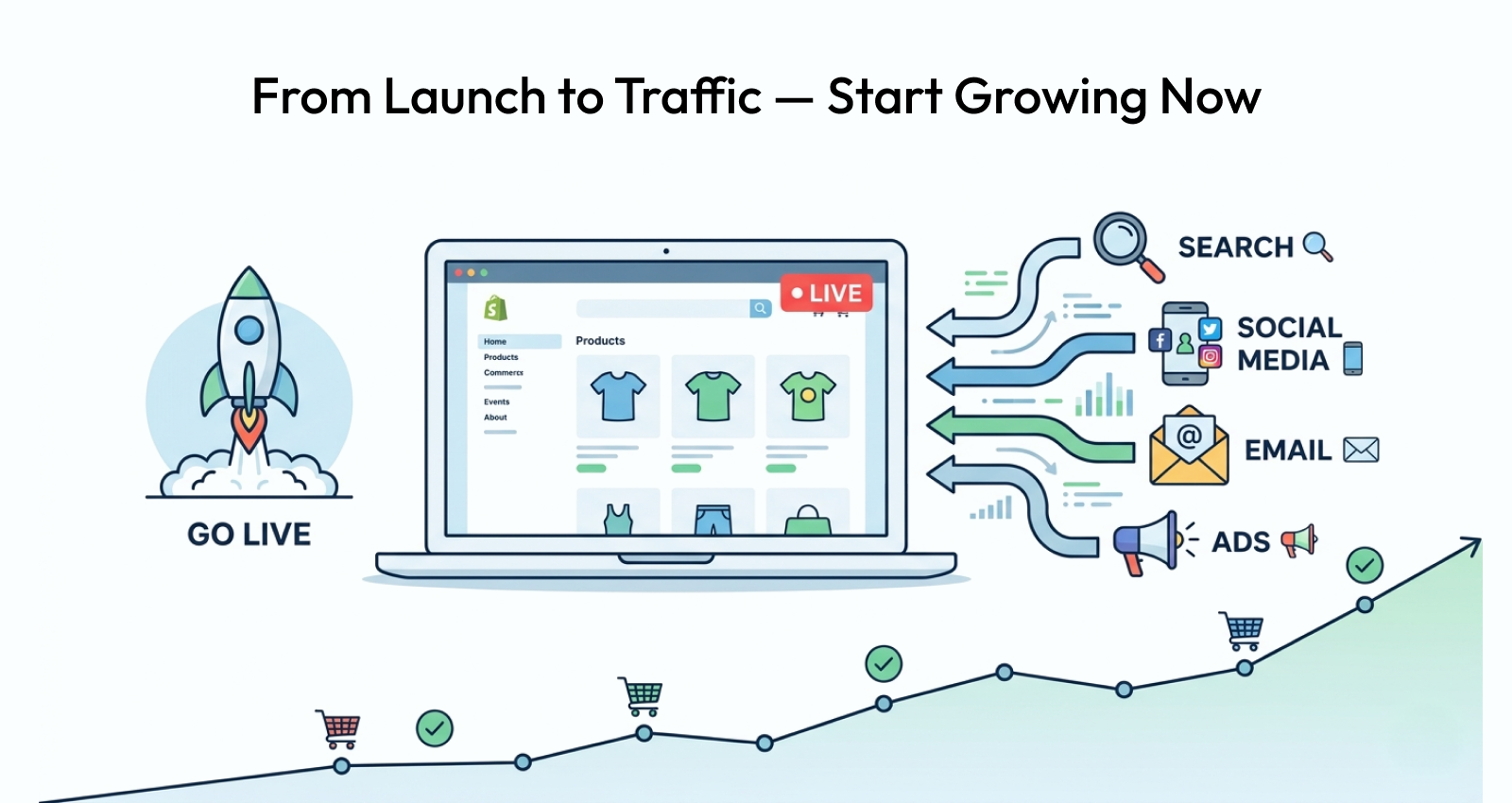 With everything tested and ready, it's time to go live. But launching isn't a "build it, and they will come" moment — you need a plan to get people to your store.