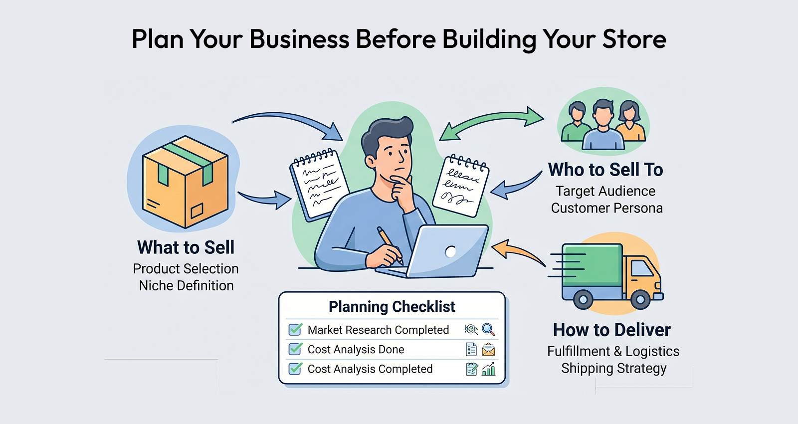 Many first-time store owners jump straight into building without a clear plan. That's a mistake. Before touching any platform, get clear on: