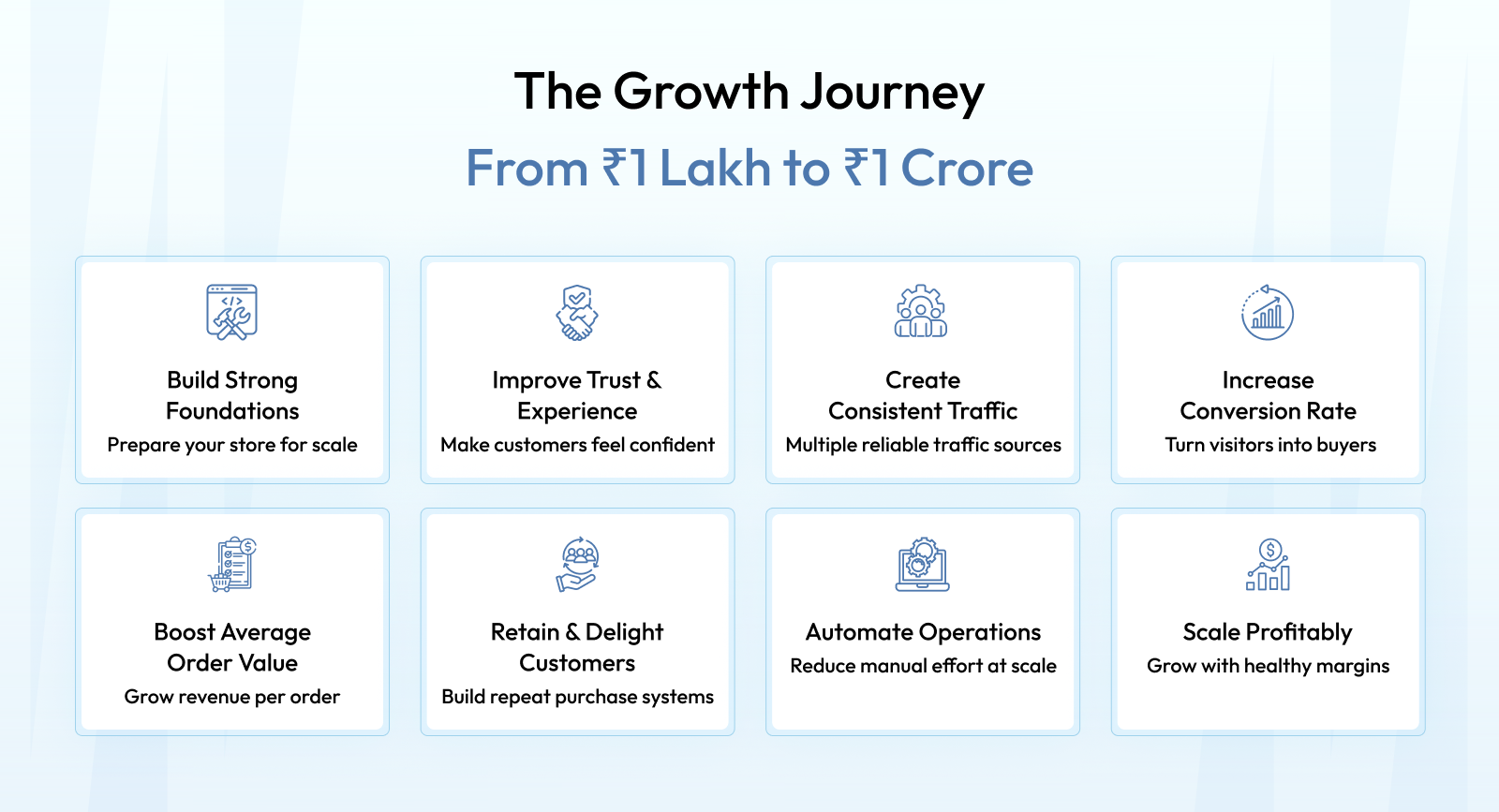 The real difference between a ₹1 lakh store and a ₹1 crore store is not luck, timing, or shortcuts. It is structure. High-growth ecommerce brands are built with intention. They communicate clearly, guide customers confidently, and remove friction at every step of the buying journey.