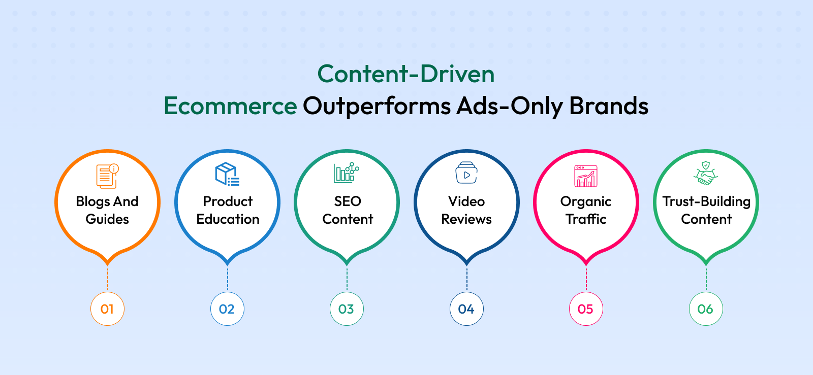 Content reduces customer acquisition cost (CAC), builds credibility, and delivers consistent long-term growth without heavy ad dependency.