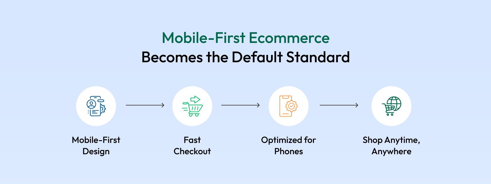 Mobile devices are now the primary gateway to ecommerce discovery and purchases. By 2026, mobile-first design is the default standard, not an optimization step. Customers expect seamless browsing, quick loading, and frictionless checkout on smartphones.