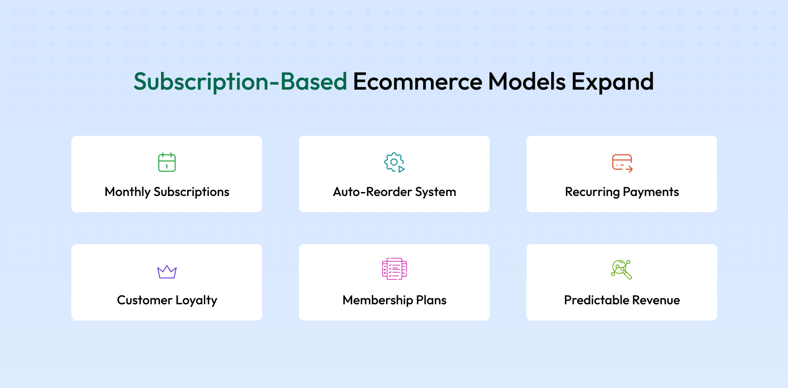 Subscription ecommerce continues to grow as brands focus on predictable revenue and long-term customer relationships. Subscriptions reduce churn and increase lifetime value by locking in repeat purchases.
