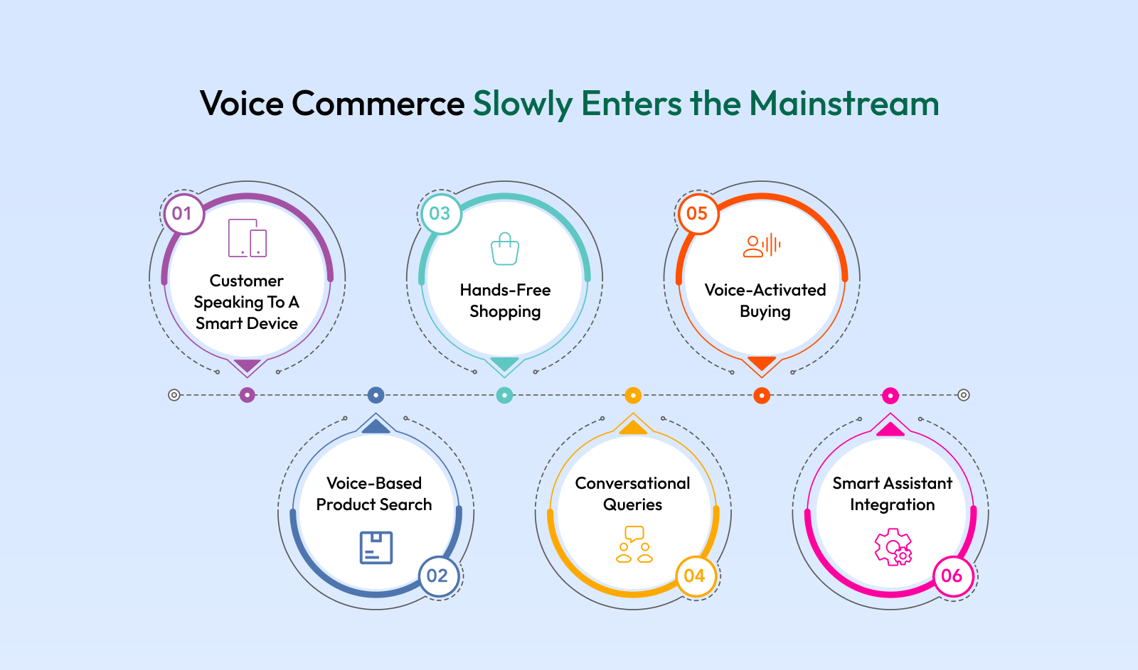 Voice commerce is gradually becoming part of everyday ecommerce interactions, especially for search, reorders, and local discovery. As voice assistants become more accurate and widely adopted, customers are increasingly comfortable using voice commands to interact with online stores.
