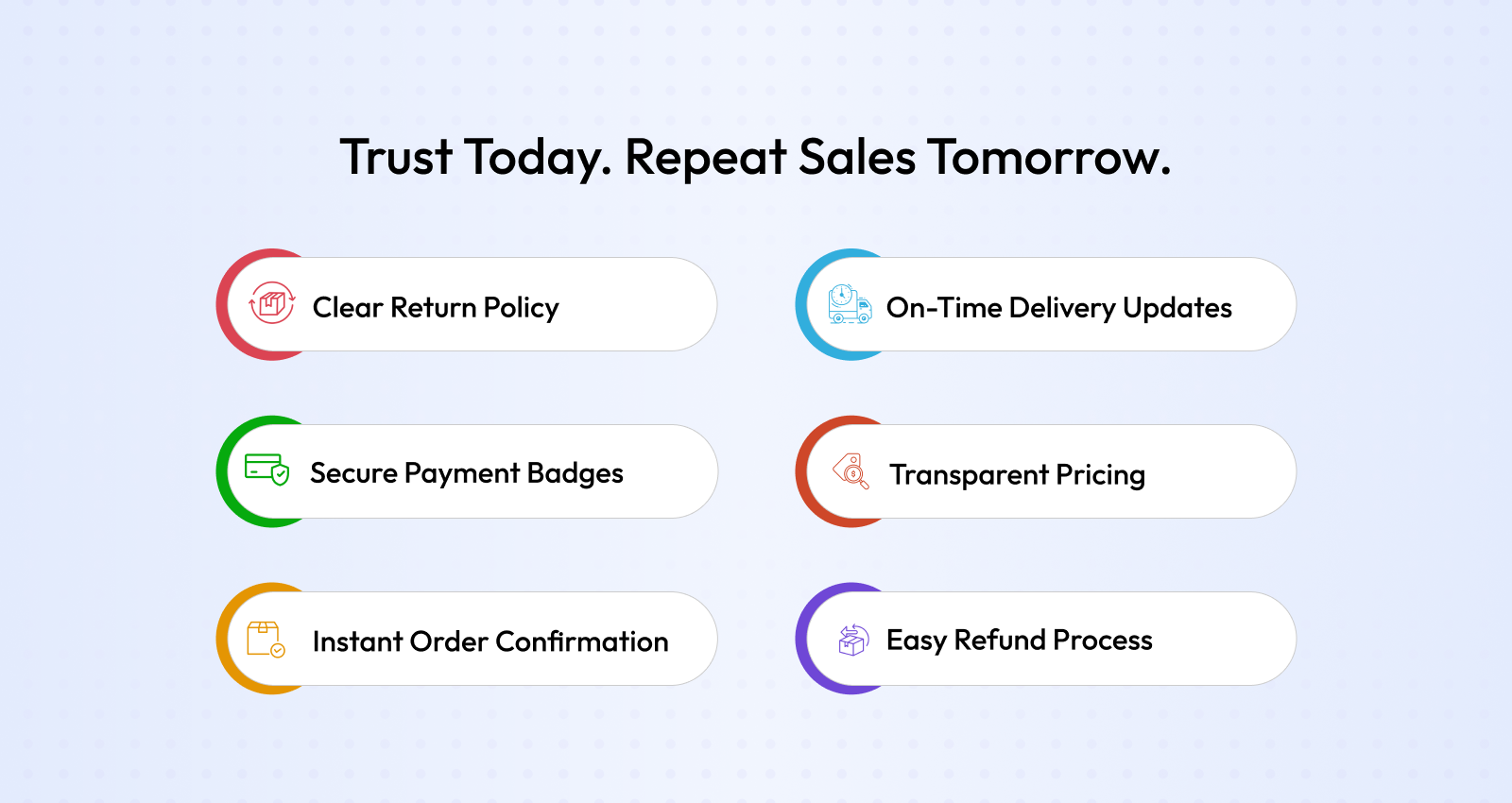 Customers feel safer when they see clear return policies and delivery timelines before making payment.